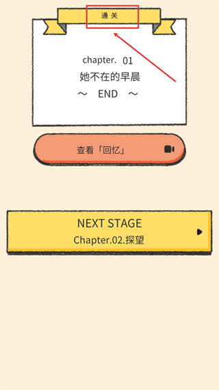 4、達(dá)成【通關(guān)】條件后,可選擇【查看「回憶」】了解劇情細(xì)節(jié),或點擊【NEXT-STAGE】進(jìn)入下一章。