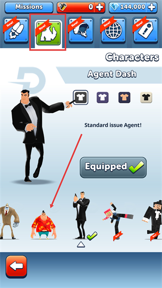 2、在【Characters】角色頁面,當前裝備的是【Agent-Dash】,點擊其他角色可查看其屬性,上方功能欄還提供道具、地圖等選項。