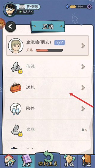 2、找到送禮選項(xiàng),點(diǎn)擊該選項(xiàng),進(jìn)入禮物選擇頁(yè)面,以便挑選合適的物品贈(zèng)予好友。