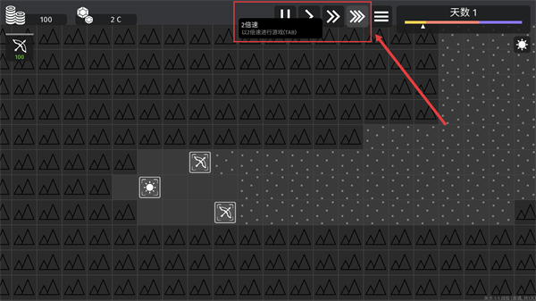 3、在游戲進(jìn)程中,點擊頂部的倍速按鈕(如【2倍速】),可調(diào)整游戲運行速度,加快關(guān)卡推進(jìn)節(jié)奏。