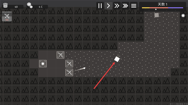 4、當(dāng)敵人出現(xiàn)后,已部署的防御塔會自動發(fā)起攻擊,等待防御塔消滅敵人,推進(jìn)關(guān)卡的天數(shù)進(jìn)度。