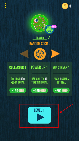 1、點擊【LEVEL1】按鈕開始游戲,完成【COLLECTOR1】等任務(wù)積累金幣,助力后續(xù)成長。