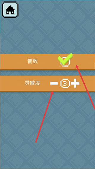 2、在設(shè)置界面可勾選或取消音效選項(xiàng)來(lái)控制游戲聲音,還能通過(guò)加減按鈕調(diào)整靈敏度數(shù)值適配自身操作習(xí)慣。