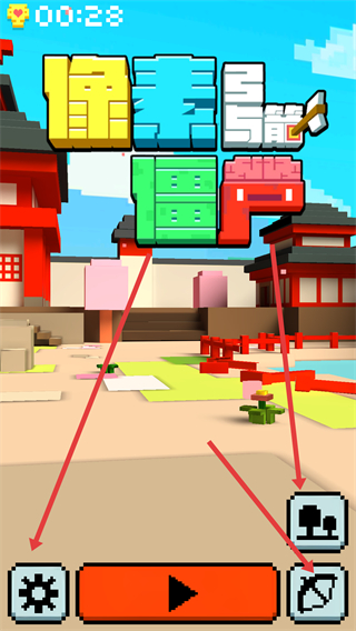 1、進(jìn)入游戲主界面后可通過(guò)下方按鈕進(jìn)行操作,齒輪圖標(biāo)對(duì)應(yīng)設(shè)置功能中間按鈕為開(kāi)始游戲,右側(cè)圖標(biāo)則關(guān)聯(lián)武器相關(guān)選項(xiàng)。