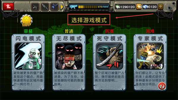 1、進(jìn)入游戲后先【選擇游戲模式】,可以自由選擇多種模式和難度。