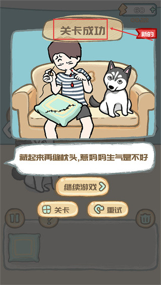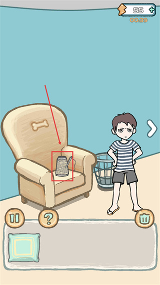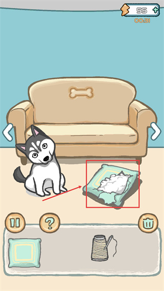 3、關(guān)注被二哈破壞的【抱枕】,需用已收集的道具進(jìn)行處理,推進(jìn)關(guān)卡進(jìn)度。