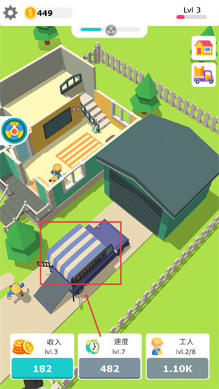 4、工人開工后即可持續(xù)積累資金,消耗資金可升級貨車容量、工人數(shù)量與工作效率,全方位提升裝修進(jìn)度。