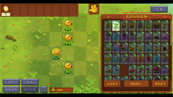 2、在【選擇你的植物】界面,選擇好植物,注意陣容搭配。