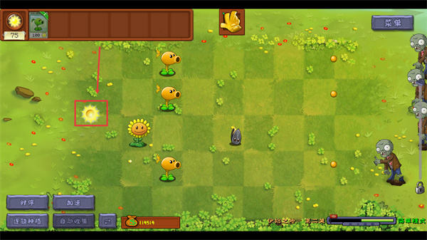 3、戰(zhàn)斗中及時(shí)收集【陽光】,積累資源用于種植更多植物。