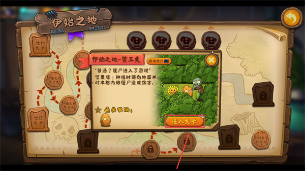 1、進入【伊始之地-第三關(guān)】前,需了解【堅果墻】的效果:種植時砸向地面并對本格僵尸造成傷害。