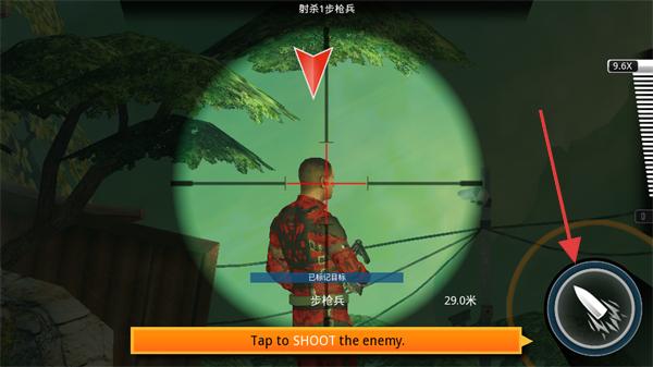 4、點(diǎn)擊射擊按鈕攻擊敵人,完成對(duì)敵方士兵的打擊,推進(jìn)射擊關(guān)卡的任務(wù)進(jìn)度。
