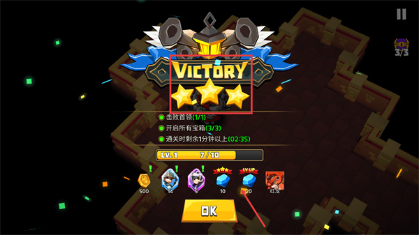 4、通關(guān)后獲得【VICTORY】三星評價(jià),點(diǎn)擊【OK】領(lǐng)取獎(jiǎng)勵(lì)。