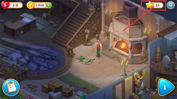 1、進(jìn)入場(chǎng)景后,關(guān)注界面右上角的【星星-25】資源,它是完成任務(wù)的關(guān)鍵消耗道具。