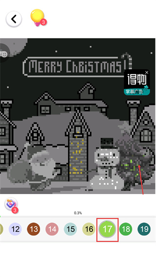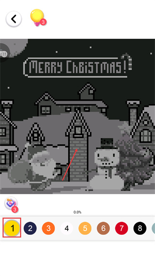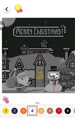 3、后續(xù)白色對(duì)應(yīng)雪人,填充時(shí)需精準(zhǔn)點(diǎn)擊對(duì)應(yīng)像素,完成后可提升關(guān)卡完成度。