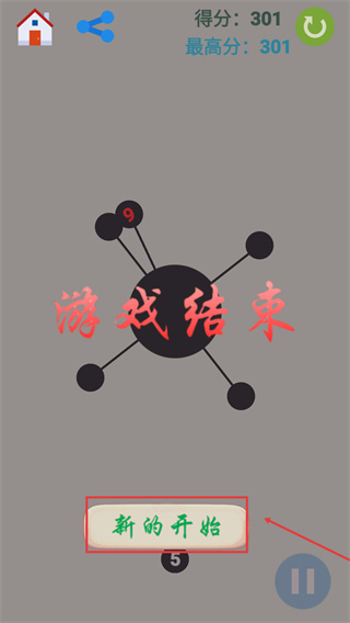 4、當出現【游戲結束】提示時,可點擊【新的開始】按鈕重新挑戰(zhàn)。