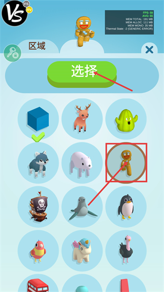 1、在【區(qū)域】界面選中對(duì)應(yīng)角色后點(diǎn)擊【選擇】按鈕,即可確定該角色進(jìn)入游戲環(huán)節(jié)。