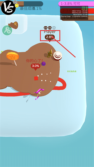 3、對(duì)局中通過(guò)吞噬道具提升占比,如獲取【3.0%】類(lèi)資源,可提升自身【Player】的占比數(shù)值。