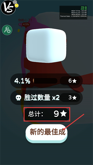 4、對(duì)局結(jié)束后統(tǒng)計(jì)【總計(jì):9顆星星】,包含占比與擊敗數(shù)對(duì)應(yīng)的星級(jí),達(dá)成后可解鎖新內(nèi)容。