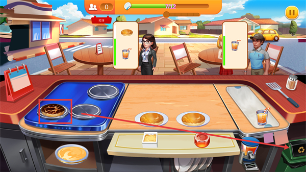 3、將制作失敗的餐品丟棄至【垃圾桶】,及時(shí)清理操作臺(tái),避免影響后續(xù)菜品制作與服務(wù)效率。