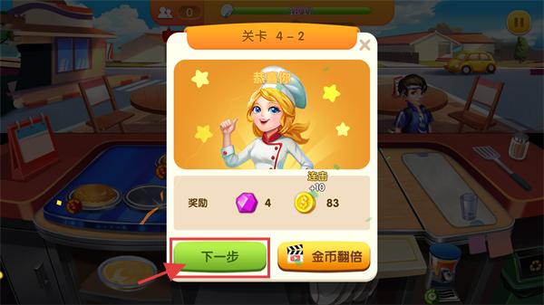4、完成關(guān)卡后領(lǐng)取【2】紫鉆與【59】金幣獎(jiǎng)勵(lì),點(diǎn)擊【下一步】按鈕進(jìn)入后續(xù)流程,推進(jìn)游戲進(jìn)度。