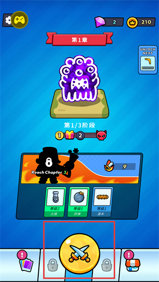 1、進(jìn)入界面后點(diǎn)擊底部帶雙劍標(biāo)識(shí)的按鈕,查看界面內(nèi)增益道具為挑戰(zhàn)做準(zhǔn)備,開啟關(guān)卡挑戰(zhàn)。