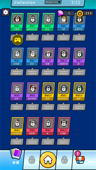 4、在【Collection】界面里,查看已解鎖和待解鎖的道具,這些道具對(duì)應(yīng)不同等級(jí)增益效果,可規(guī)劃其解鎖順序。